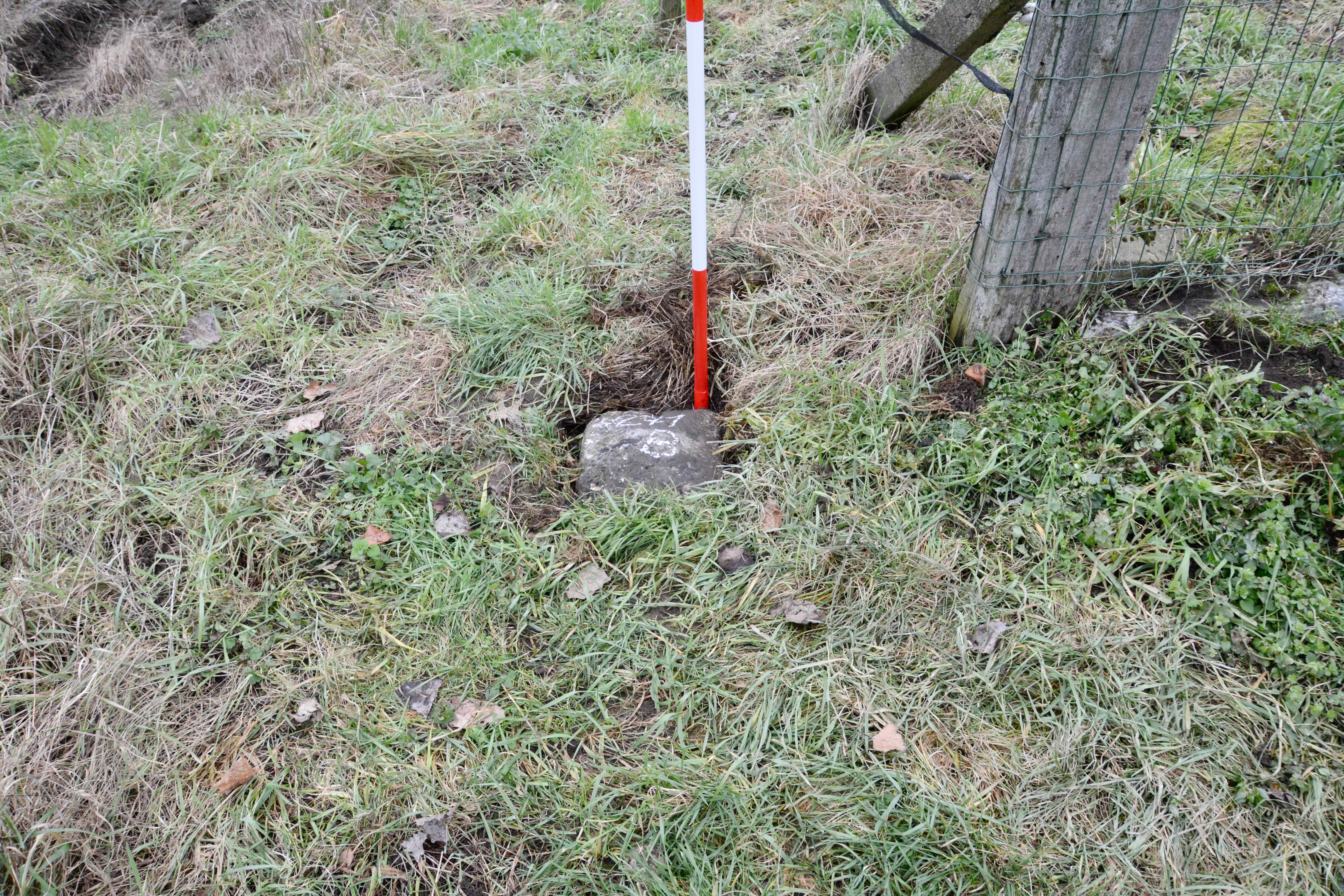 Advies: naast de dijk, aan de overzijde van grenspaal 269A. Op deze plaats zal de steen als cultuur-historisch monument het beste zichtbaar zijn én het minst onderhevig aan het risico van bescha-diging door bijv. landbouwmachines.